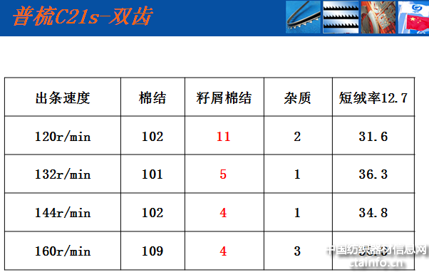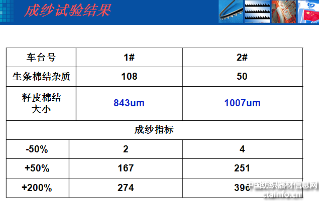 一般,纺企都忽略了籽皮棉结的影响,籽皮棉结指标对成纱质量的影响很大,该指标与工艺隔距、针布状态有关。
