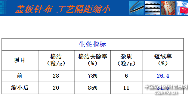 工艺隔距变化,对半成品及成纱指标有影响。工艺隔距缩小,可导致杂质的颗粒数和短绒增加。