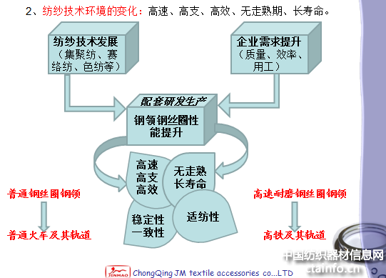 钢领钢丝圈配套研发和配套生产是非常重要的,直接影响着纱线的条干、毛羽、断头等质量指标、纺纱效率、以及用工成本。