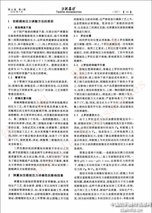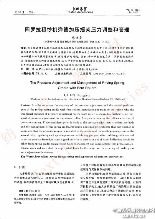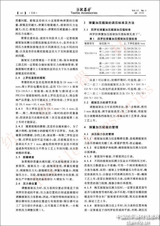 四罗拉粗纱机弹簧加压摇架压力调整和管理