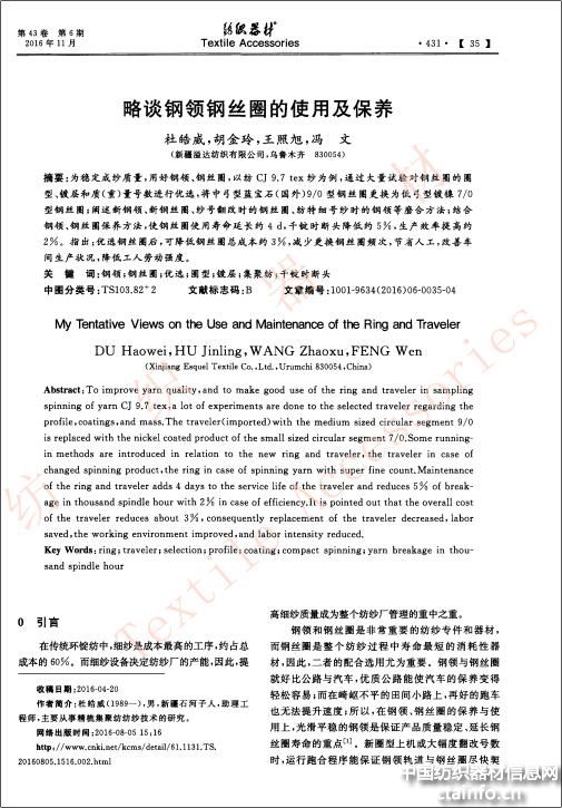 略谈钢领钢丝圈的使用及保养