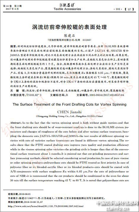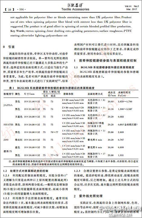 涡流纺前牵伸胶辊的表面处理