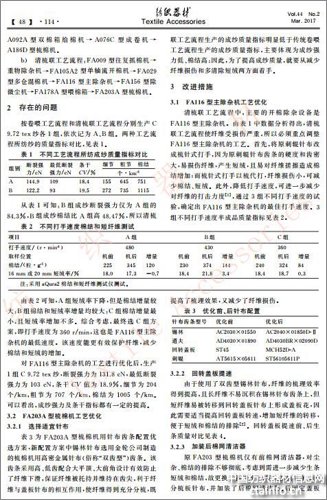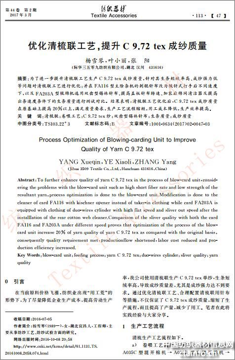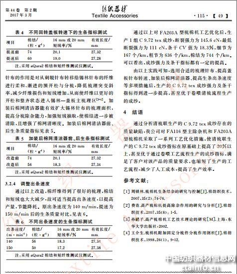 优化清梳联工艺,提升C9.7 2t e x成纱质量
