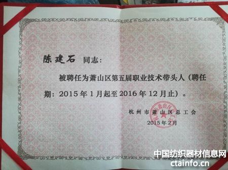 编者按:日前,《纺织器材》杂志社携手重庆金猫纺织器材有限公司举办的首届“金猫杯”2016/2017论文征评已经成功收官。“纺织器材在线”官方微信将为获奖者特别定制一期“纺织印记”,为此次活动画上完美句号。来自宏扬控股集团有限公司的陈建石老师凭借《涡流纺前牵伸胶辊的表面处理》(点击查看)一文斩获二等奖。陈建石老师投身于纺织,着眼于胶辊,是纺织行业真正的“工匠”,下面让我们一起了解下陈建石老师吧!