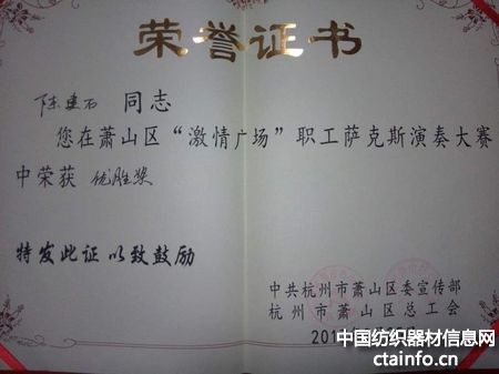 2017年2月获得萧山区“激情广场”职工萨克斯大奖赛优胜奖等。