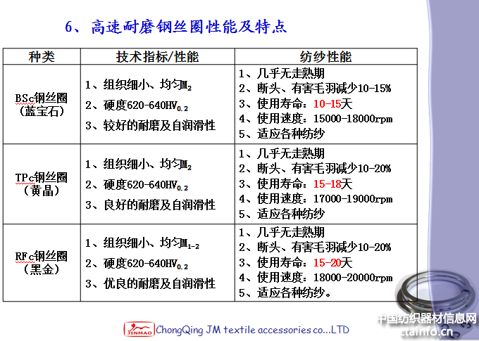钢领、钢丝圈只有配套研发和配套生产,才能保证二者跑道形状的精准匹配;钢丝圈、钢领是高科技产品,更是高价值产品,不再是一个简单的低值易耗品;钢丝圈、钢领提高制造精度是非常必要的,对控制纱线的张力波动、气圈大小、毛羽、棉结等起着非常重要的作用。