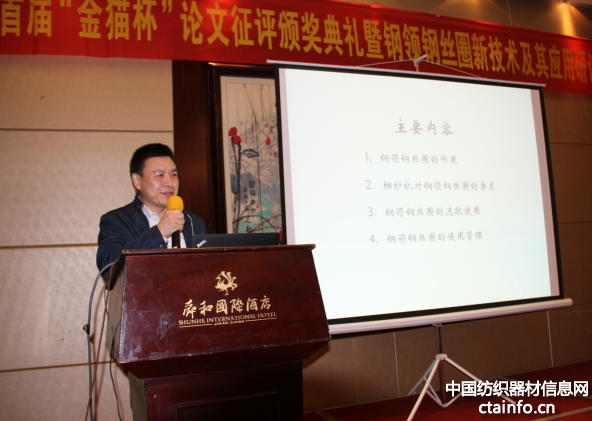 日前,首届“金猫杯”2016/2017论文征评颁奖典礼暨钢领钢丝圈新技术及其应用研讨会在济南成功召开。德州富华生态科技有限公司副总经理雒书华作了题为《如何在高速高效环境下提升钢领钢丝圈的应用》的报告,探讨了钢领钢丝圈的结构、作用,高速条件下棉纺细纱机对钢领钢丝圈的新要求,深刻分析了在使用过程中如何选配、使用和管理钢领钢丝圈。
