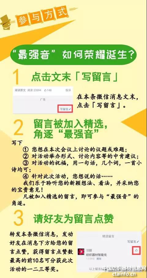 为答谢您的关注与支持,促进纺织器材专件智能化发展,配合第三季度在河南省举办的“金轮·金猫杯”2017 纺纱织造智能驱动 器材专件创新发展专题论坛的召开,“纺织器材在线”特别策划“金轮·金猫杯”寻找最强音有奖互动活动,为您搭建“发声”平台。
