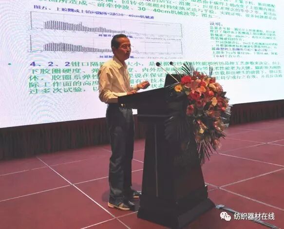 9月6日-8日,“金轮•金猫杯”2017’纺纱织造智能驱动 器材专件创新发展专题论坛在河南开封隆重召开。安徽八一纺织器材有限公司总工程师文皖做了题为《胶圈与细纱2 m左右机械波成因关系探讨》的报告。文总指出了胶圈在牵伸工艺过程中的作用及重要性,分析了细纱成纱后2 m左右机械波的图像与主要特点,胶圈与机械波成因的关系,提出细纱胶圈的技术理念,上下胶圈的配合原则等以提高纺纱质量,降低胶圈的使用成本。