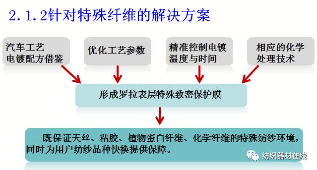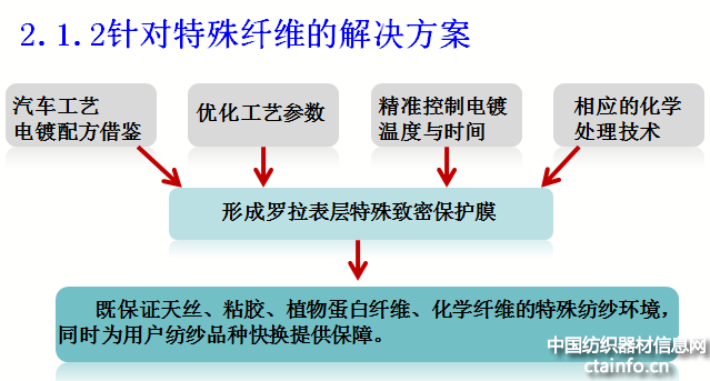由于特殊纤维对罗拉表面处理介质要求高,要求增加罗拉的耐腐蚀与防腐性。为此,借鉴汽车工艺电镀配方,制定解决方案。经长期纺纱验证,运转平稳,纱线品质好,彻底解决控制罗拉起皮问题,为其数字化车间良性运转提供了有益保证。