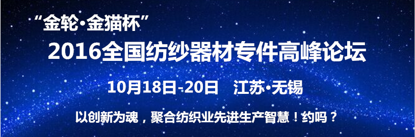 导读:为帮助企业进一步深入了解新型纺纱器材专件的优势,发挥所长,避其所短,中国棉纺织行业协会、全国纺织器材科技信息中心、《纺织器材》杂志社定于2016年10月18日—20日在江苏无锡召开“金轮•金猫杯”2016全国纺纱器材专件高峰论坛,旨在从开发、应用新型纺纱器材专件,积极采用新材料,优化调整新工艺,到强化企业技术、管理创新,加快自动化、信息化、智能化应用步伐等方面,破解纺织企业应用难题。